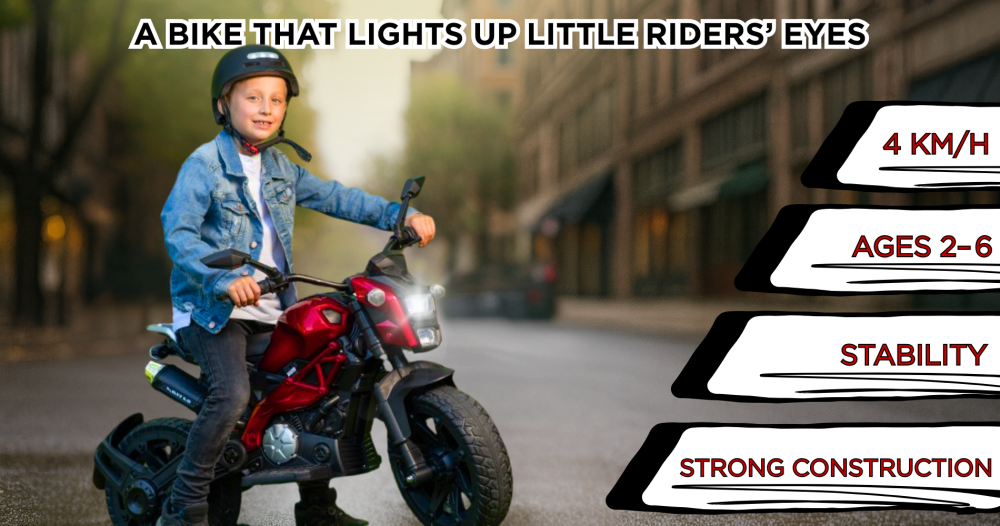 Children's electric motorbike BLUETOUCH - a dynamic ride for little racers! Powerful 45 W motor, 12V battery, speed 2-5 km/h, realistic sounds and light effects. Seat belts and stable construction for a safe and comfortable ride for all children who are attracted by the adventure on two wheels. More