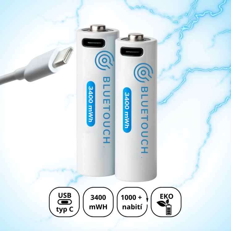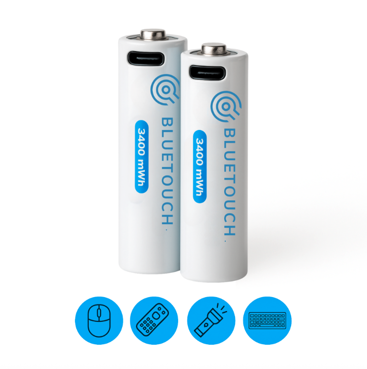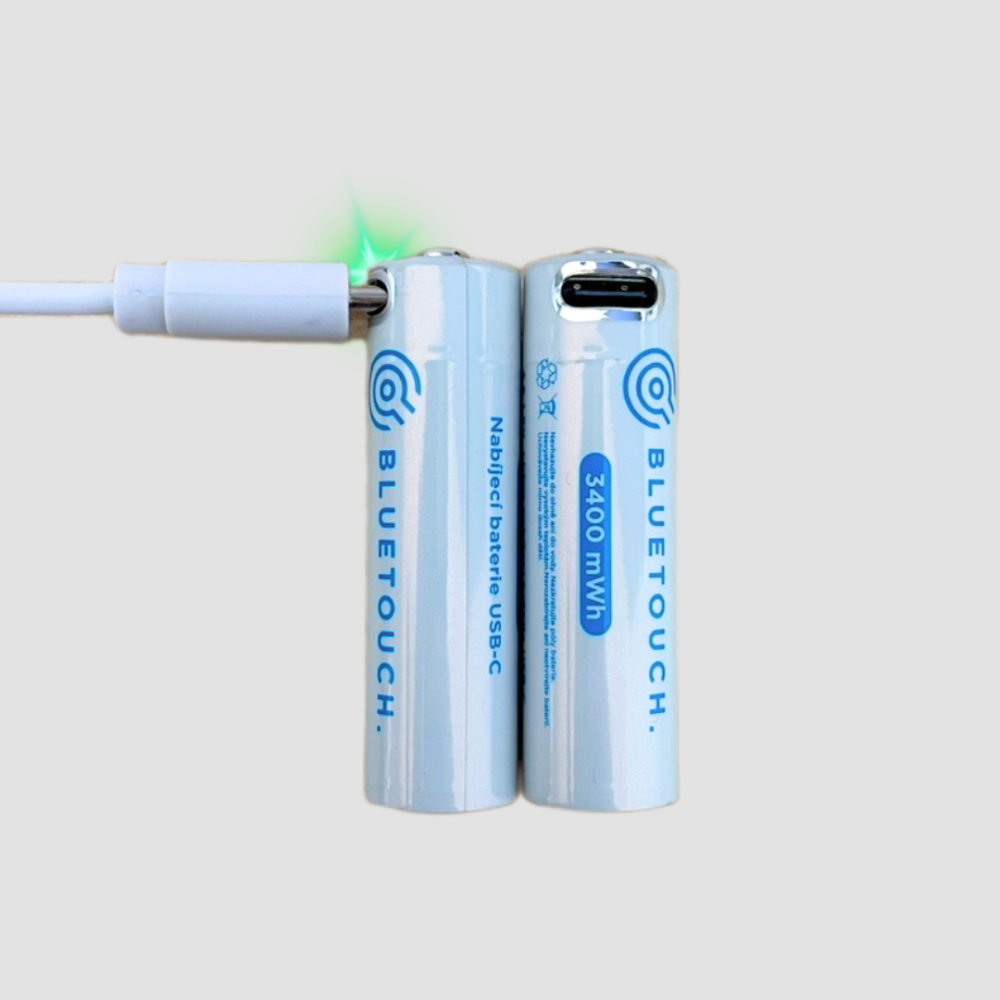 USB-C baterie Bluetouch jsou dostupné v klasických velikostech AA a AAA, takže je můžete dát kamkoli: